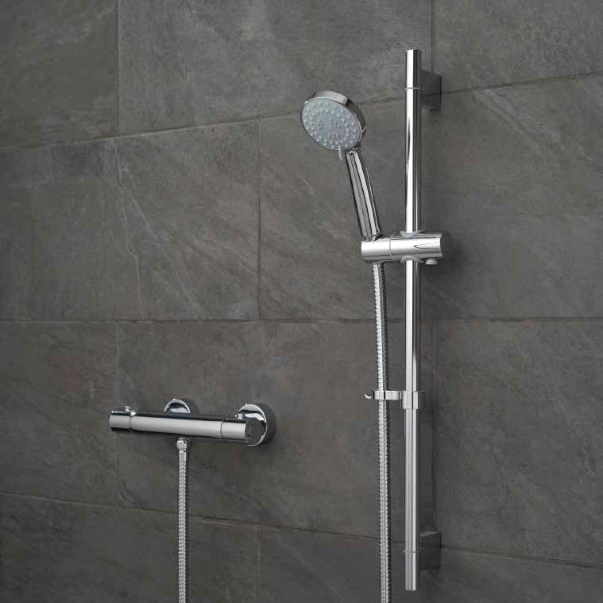Exposed shower systems are mixer showers that need a hot and cold supply and all the workings are on the outside of the wall. The showers valves are normally thermostatic (which means that the temperature is constantly regulated & controlled in case of any interruptions to the hot or cold water supply). Manual showers are the opposite and don’t have a constant temperature control.
